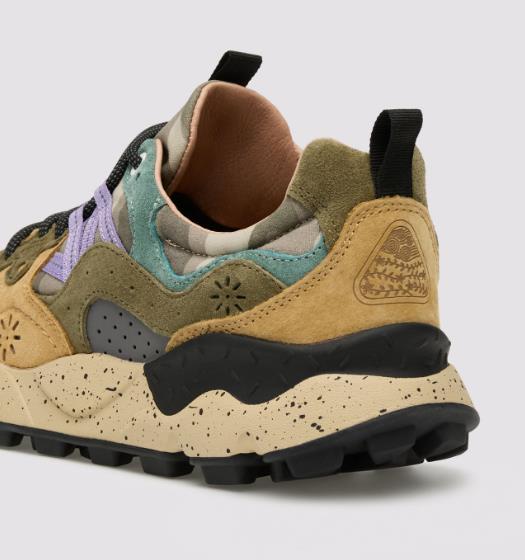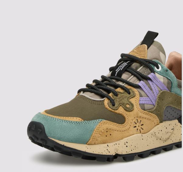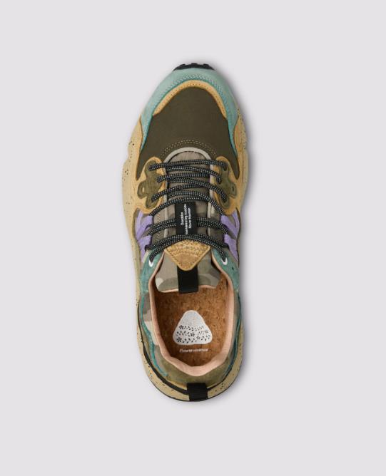 YAMANO 3 MAN Suede and technical fabric sneakers - camo petrol